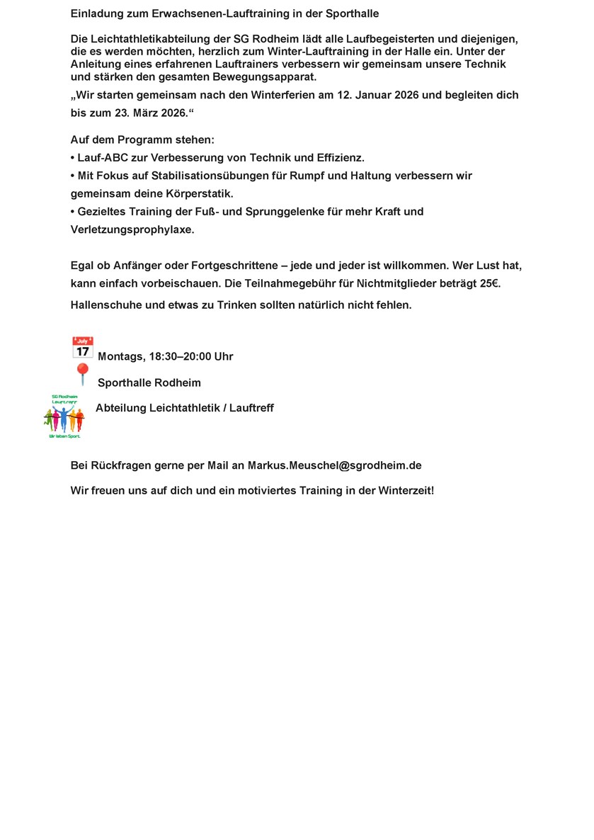 Lauftraining in der Halle für Erwachsene